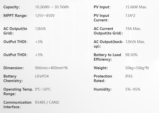 直流输入连接器:H4/MC4(可选) 交流输出连接器:连接器 显示:OLED+LED/WIFI+APP "通讯接口: USB/RS485/WIFIGPRS/4G":具备 质保: 5 年 / 10 年:可选